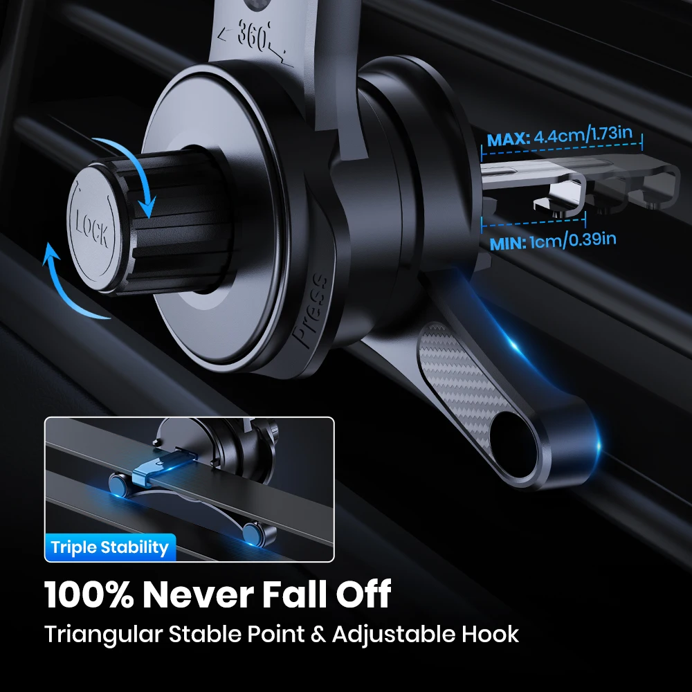 [Safe and Stable] This car phone holder with the latest hook clip design, can be securely attached to the air vents. And holds your phone tightly even on turning, roads with potholes, speed bumps and bumpy roads.Don't need to worry about your phone falling off when driving.